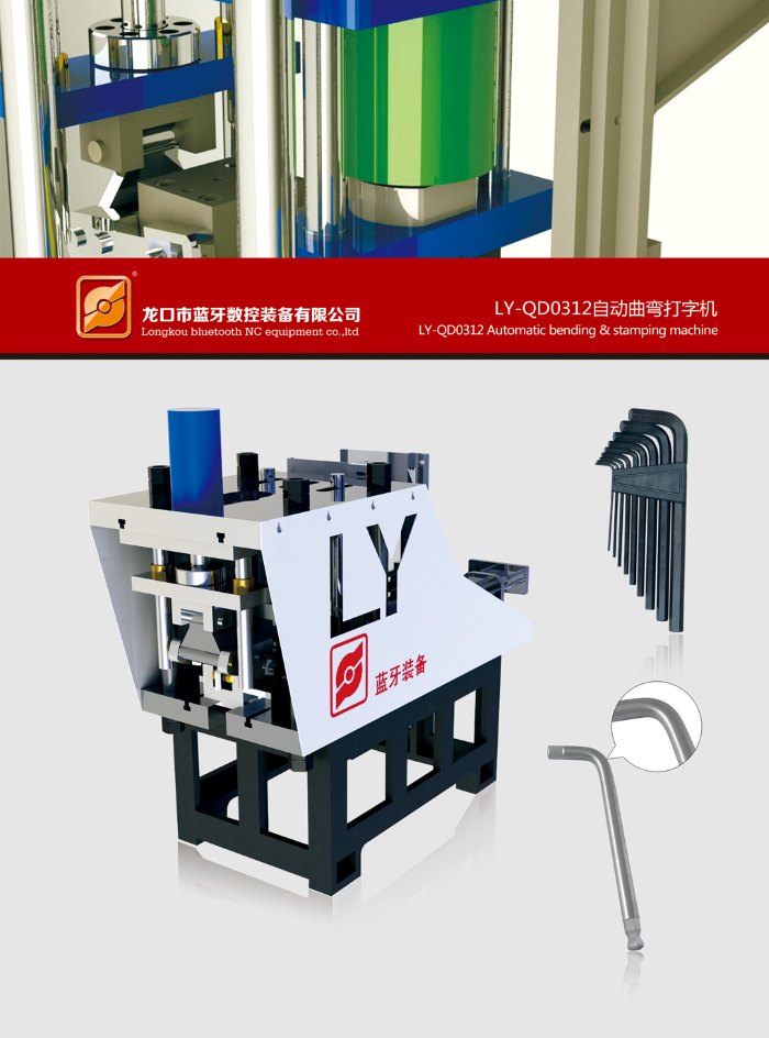 ★內六角打字折彎機床改變了傳統的加工工序,針對于五金工具行業,內六角,花形六角板手,及套筒附件等需要既曲彎成型又要打字的產品,進行了多工序的整合,一次成料,打字曲彎成型同時進行完成;
