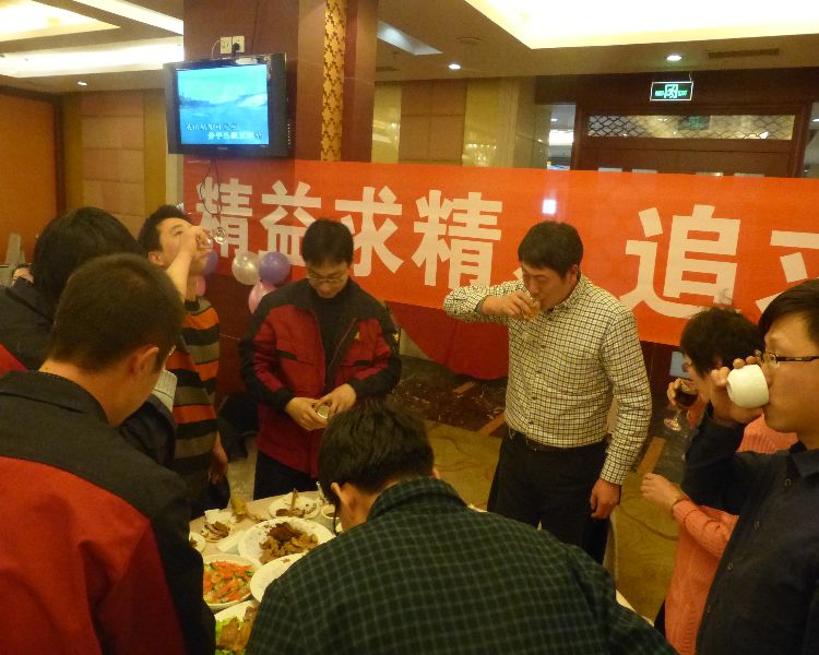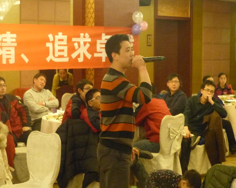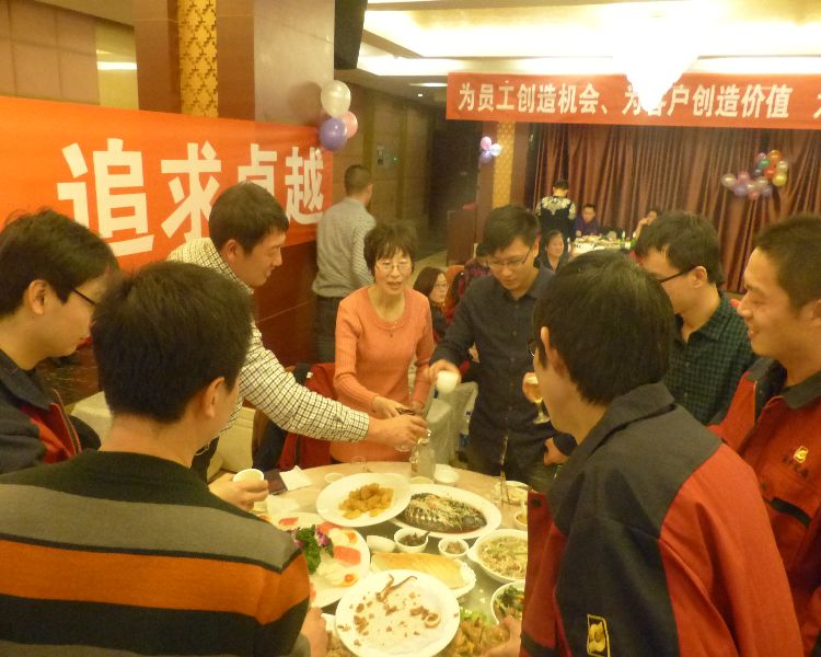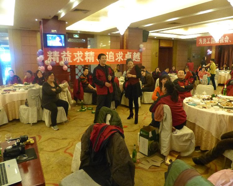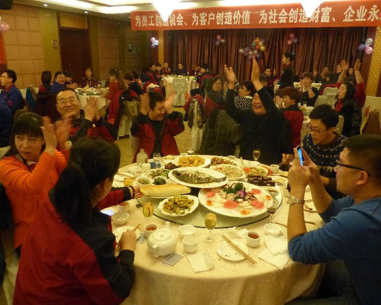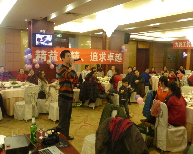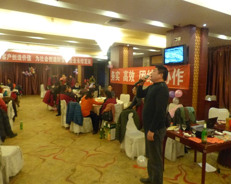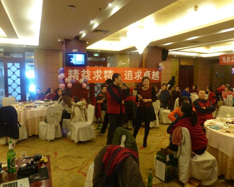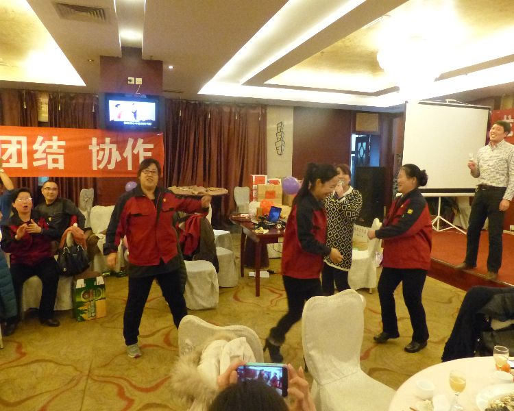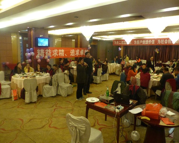中午11:30,公司聚餐,并進(jìn)行卡拉OK演出。整場演出氣氛熱烈歡騰,節(jié)目精彩紛呈。演出節(jié)目逐一上場,臺上臺下成了歡樂的海洋,掌聲、叫好聲、歡笑聲不絕于耳。佳作紛呈的表演不但彰顯了員工們的個人才藝,更體現(xiàn)了企業(yè)的團(tuán)隊凝聚力和同事之間良好的合作精神,增進(jìn)了企業(yè)文化建設(shè)。最后由公司領(lǐng)導(dǎo)做了重要發(fā)言,對公司一年來所取得的成績給予肯定,慷慨激昂的致辭給大家增添了無窮的信心。
